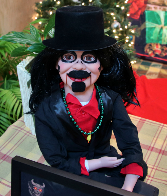 I presented Sventa with his new gift and he must have liked it since he set it up on his booth. Dare I say it added the perfect touch of “horror host” to the festive decor.