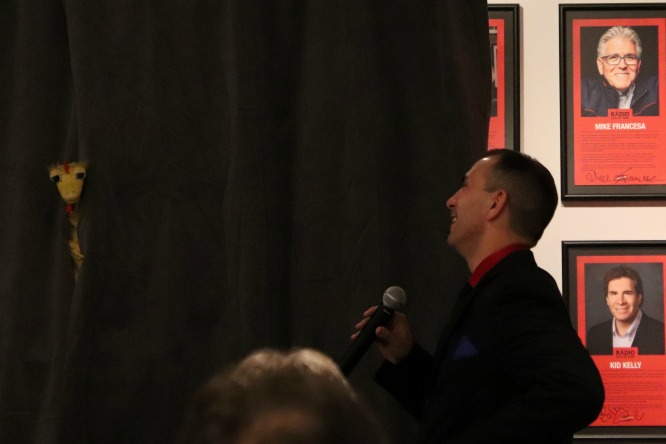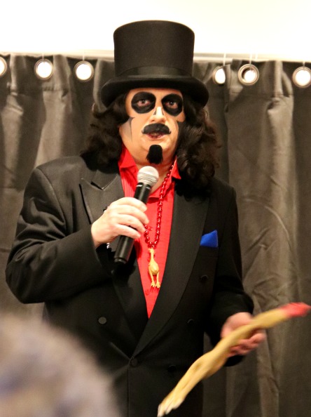 The “Ringmaster,” Dave PlierIn an unexpected turn of events, Svengoolie temporarily left the stage so that his onscreen assistant, Kerwyn, could take over. Kerwyn, of course, is the prehistoric rubber chicken who’s been Sven’s sidekick during the viewer mail portion of the show for the last decade. He also hosts his own webisodes where he reads jokes submitted by fans; something he’d be doing “Live” here. Kerwyn was created by the talented Jessica Carleton who now writes for Sesame Street and this event represented the first time he’d ever left the station. “Random” people from the audience were selected to stand up and guess the punchline to his jokes including Nicholas Cara.