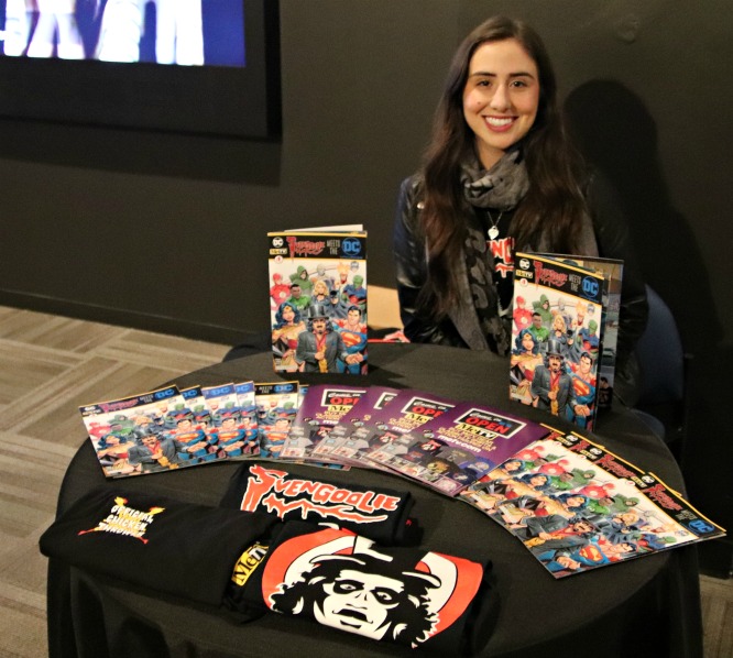 The second floor of the museum consisted of several adjoining rooms, the first featuring a table of treats and another with Svengoolie shirts and posters for sale. The third room featured a table with free beverages including Coca-Cola products as well as beer and wine.