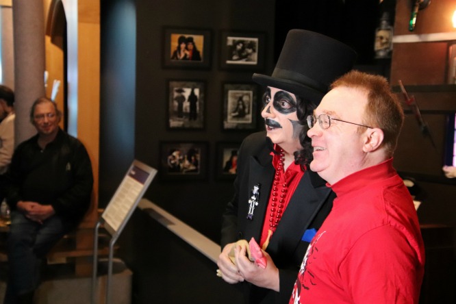 Happy Anniversary Nanci and Lee!When Svengoolie and Jim finally arrived, we assembled in line for photos. The MeTV national horror host stood in front of his exhibit while a photographer commissioned by the museum took the shots. Although it probably wasn’t obvious to most of the attendees, I could tell that the Volo appearance had worn them out.