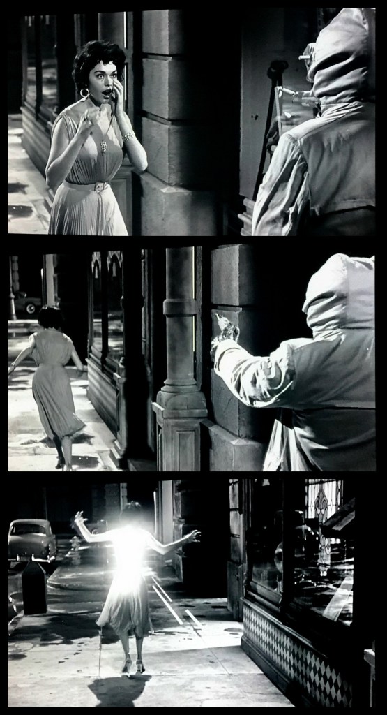 The most noticeable defect took place during a scene between Marge (Gloria Talbott) and Helen (Jean Carson). After Marge pulls her away from the wedding rehearsal to warn her about her upcoming marriage, the quality suddenly takes a downward turn. As soon as that scene ends, the picture goes back to normal, so I’m guessing it’s indicative of damage done to the original print(?).