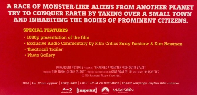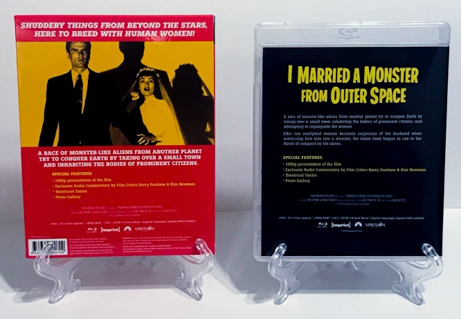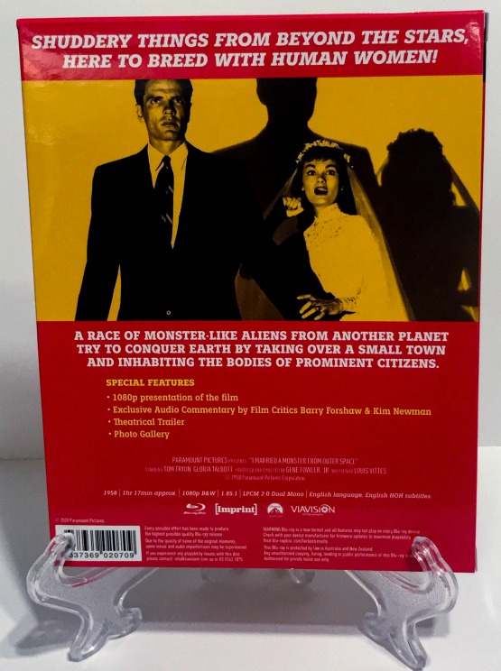 Worth the Price?: That’s a tough question to answer. With the numerous US and UK boutique labels operating today, it’s nice to see Australia joining the mix and, quite frankly, nailing it! The Aussie’s should be very proud of this company and absolutely support them. It’s really all about the shipping. I don’t know what the rates are from Australia to the UK or Canada but coming here to the United States was really expensive. One title alone can cost you $20 to ship and if you order their entire bundle, it’s closer to $50. Imprint’s next batch includes When World’s Collide (1951) and I hesitate to order. American collectors won’t be missing much if they opt for Criterion’s War of the Worlds. Personally, I had to have I Married a Monster from Outer Space,