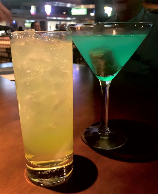 After check-in, we all met at the adjoining Caddyshack restaurant – an establishment founded by Bill Murray’s brothers and themed after the 1980 movie of the same name. It was a bit early in the day but I felt like celebrating and indulged in a couple of drinks. Going off the restaurant’s special convention menu, I ordered “Chrissie Watkins’ Last Swim” so named after one of the weekend’s featured guests, Susan Backline, a.k.a. the first victim of JAWS. Angie opted for one of house specials, “The Pool” – a deep blue cocktail with a baby Ruth candy bar sitting at the bottom. Anyone who’s seen the movie Caddyshack will get the joke.