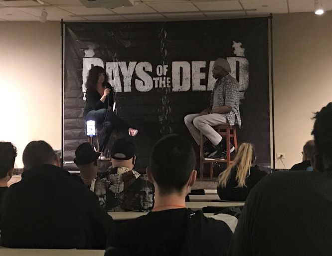 Jason and I left the convention hall and went downstairs for the panels. This is where the Days of the Dead convention really seemed off. For the last 10 years I have only seen two guys run the panels and there’s always a big stone horse sitting on stage with them. This year the horse was gone and we had a new, fresh face running the panel – Summer Flynn from The Dolls of Horror podcast. Although change can be uncomfortable, I must say that she did a great job and brought a lot of energy. She also interacted more with the audience and got everyone fired up. Her husband took video of all the panels and posted them on YouTube channel so nobody has to miss out. The first panel we attended was with David Naughton who discussed his iconic role in An American werewolf in London.