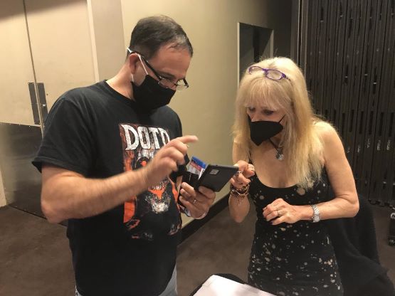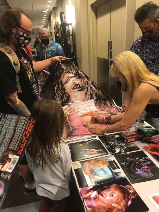 We both went to see Linnea Quigley to have her sign our Scream Factory ROTLD Blu-ray inserts. We just watched her the night before in another of her iconic roles in Night of the Demons.