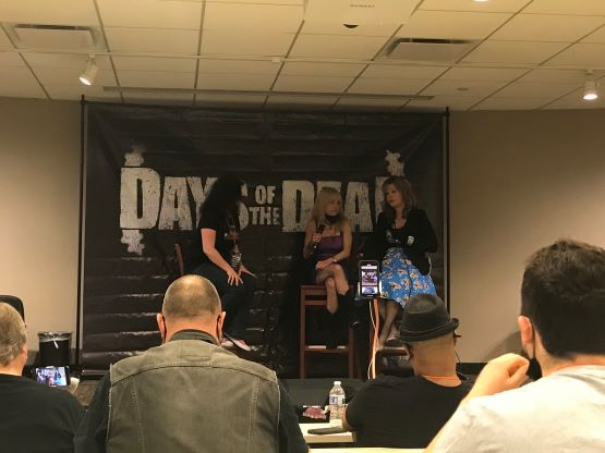 After lunch, Jason and I went downstairs for the panels. The first was Tony Moran from the original Halloween (1978). While Nick Castle played the predominant Michael Myers in the film, it’s Moran’s face you see when he’s briefly unmasked by Jamie Lee Curtis‘s, Laurie Strode. I’ve seen entire YouTube videos dedicated to dissing Tom Moran but he was friendly when I met him at the “Days of the Indianapolis last year. True. his part was mere seconds but I’m pretty sure if any of us had a minuscule part in a major horror franchise, we’d milk it for the almighty dollar if we could, too. In fact, I once saw a man who played a background zombie in an episode of The Walking Dead charge $20 for his autograph. After attending Moran’s Q&A panel, however, I did understand where some of that animosity comes from. For one thing, he doesn’t give a crap about Halloween nor the franchise – something you should at least pretend to be when addressing (and getting cash from) its fan base. Secondly, he ripped on a lot of other horror convention sweethearts such as Tyler Mane and Derek Mears. Even my friend, Bunny, wanted to throttle him after I told her all the nasty things he said about Erik Estrada. Bunny was a huge fan of the TV show CHiPS and has spent the better part of four decades fantasizing about him tossing her on his motorcycle and driving off into the California sunset. She was not about to let some “two-bit celebrity wannabe” bad mouth him. At one point he had his teen daughter come on stage and sit next to him for no apparent reason. Like any teen caught off-guard the poor thing just stared at the audience like a deer in headlights. Poor Summer from “The Dolls of Horror” podcast had her work cut out trying to moderate this panel.