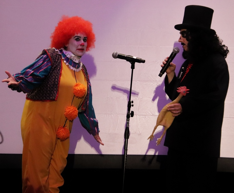 By the end of the contest, there was but one contestant everyone was talking about…Stone Cold E.T.! Yes, as soon as he lept on stage, it became a free-for-all or, as our Captain Spaulding girl would probably say, a clusterf**k! Grabbing the microphone, he went on a professional wrestler-style tirade while Svengoolie and the audience sat in stunned disbelief. The problem was you couldn’t understand what he was saying through the mask – despite yelling through a hole above the mask’s left eye.
