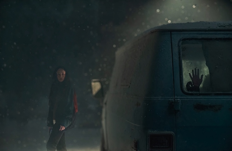 The story centers around Darby, a young woman traveling through the Rocky Mountains amidst a snowstorm to see her dying mother. The worsening conditions force her to take refuge at a rest stop where she encounters four seemingly innocent strangers. She soon learns that at least one of them is harboring a dark secret after noticing a little girl chained in the back of one of their vehicles. From this moment on, it’s a race to try and rescue the child while battling the elements and the would-be trafficker(s). Adams’ story is loaded with twists and turns and although the term “thrill-ride” is often overused, it’s well-earned here. The film is decent but lacks much of the book’s excitement. It does stay fairly true to the story despite some deviations. Such as…