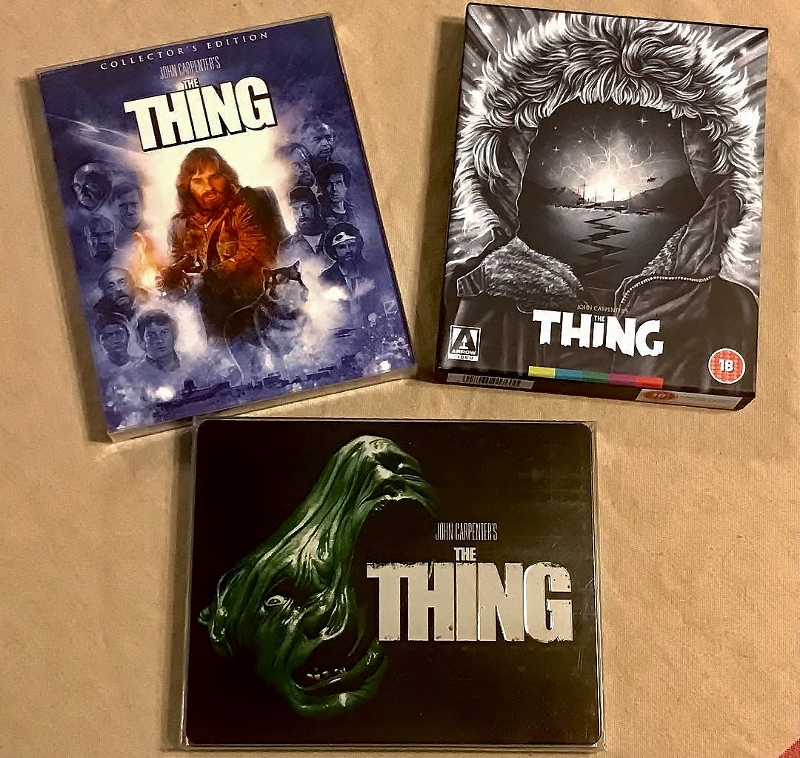 My Achilles heel is that primitive part of my brain that’s still attracted to shiny things. This is what makes those boutique labels so darn seductive. I have three Blu-ray copies of John Carpenter’s The THING. The first one I bought from Shout! Factory. Then I went on to buy the Arrow box edition (Confession: I LOVE Arrow box editions above all other packagings) and an attractive import Steelbook I found on eBay. I bought the last two for no other reason than how they looked – plus the Arrow one offered more bonus features and a booklet/poster.