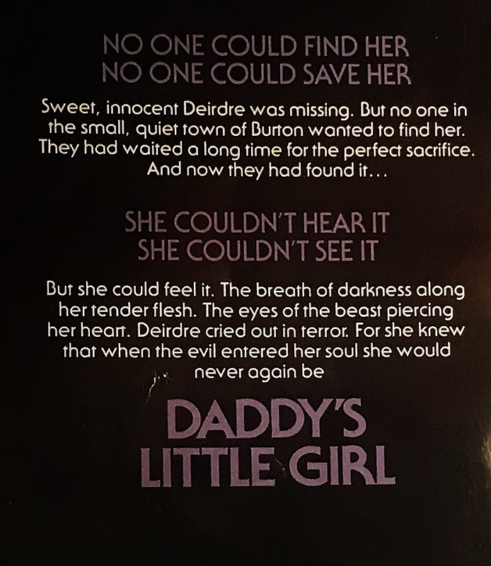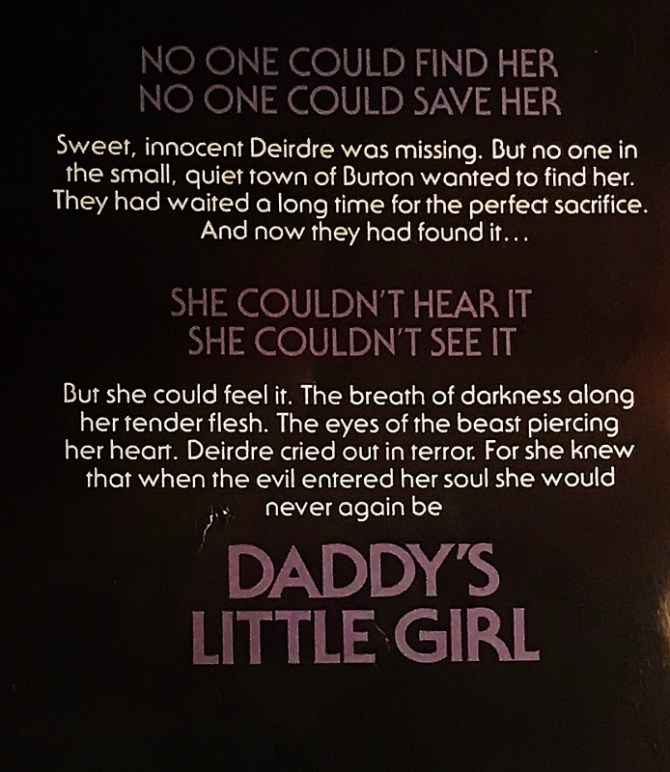 Despite playing out as a Thriller, “Daddy’s Little Girl” does check off most of the boxes in terms of your classic ‘80s horror paperback. We have that glorious Zebra Books/skeleton cover that has nothing to do with the story. We’ve got a disjointed narrative that often doesn’t make any sense. We have a head-scratching twist ending. There’s also plenty of gratuitous sexual content with rape used as a casual plot device. While this story isn’t quite as egregious as, say, a William Johnstone novel, it’s definitely in the running.