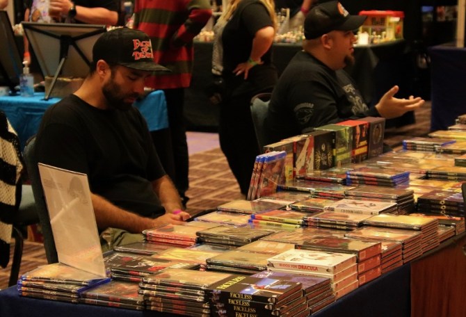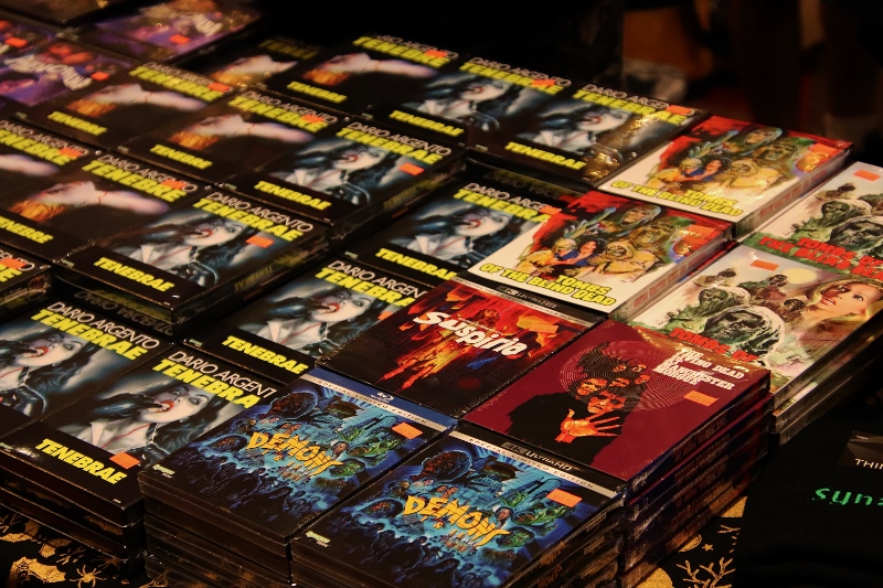 Fortunately, I did not need their headliner, Robert Englund‘s, autograph as he was charging $120 per signature (no picture outside of a paid photo op) and you needed to get a time ticket in advance that many missed out on. Back when I met him ten years ago in Massachusetts, he charged $40 which included a picture taken with your own camera. So thank God I jumped on it then! With the autographs out of the way, it was time to focus on my all-con$uming hobby – physical media. Both Jason and I are collectors and, thanks to Flashback, felt like kids in a candy store – or probably more like meth heads on a corner. While most horror cons attract second-hand sellers, Flashback Weekend brings in the heavy artillery with Synapse, Full Moon, Severin, and Vinegar Syndrome all present with an arsenal of their finest flicks. Sometimes, they were even cheaper than what you’d pay online not to mention no shipping fees (nor headaches). It was awesome but, at the same time, rather painful coming off of July. Between all the “halfway to Black Friday” sales, Criterion’s annual Barnes and Noble sale, and Kino Lorber’s “Spring into Summer (bankruptcy)” sale, I really should not have indulged as much as I did throughout this weekend.