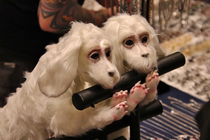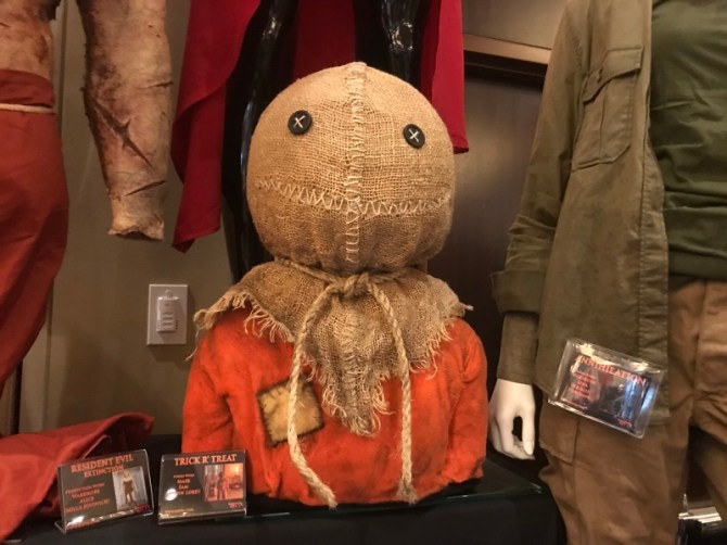 I didn’t realize it until Lord mentioned it in his Sunday panel, but one of the actual screen-used Sam costumes was displayed directly across from his signing table at the other end of the hall. It was part of James Azrael’s non-profit traveling museum – The HSPPA/Horror & SciFi Prop Preservation Association. James wasn’t there when I stopped over but I did get a quick shot of “Sam.”