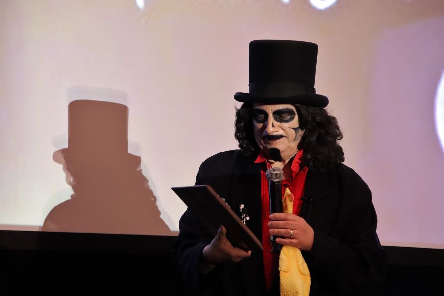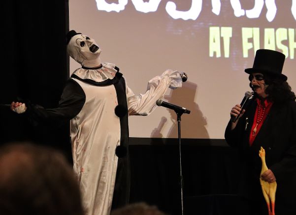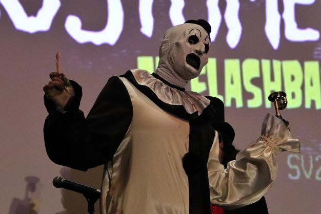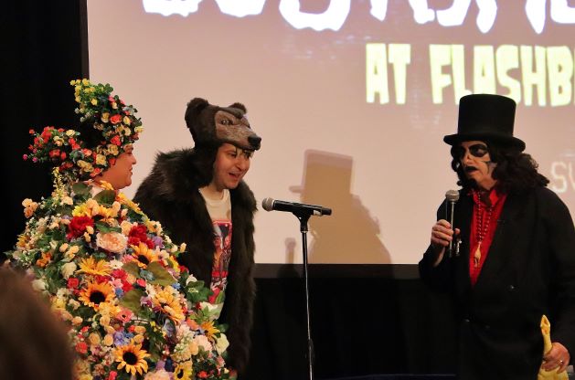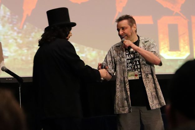 We miraculously all found one another and watched a panel on Nightmare on Elm Street 4: The Dream Master (1988) which I vaguely remember seeing in the theater back in the day. When it ended, David Colton took the stage to present Svengoolie with his Rondo Awards – Favorite Horror Host and “Monster Kid of the Year.” The latter was actually from the previous award season but, with the world in Covid supply chain issues, it didn’t make its way into Svengoolie’s hands until now.