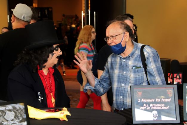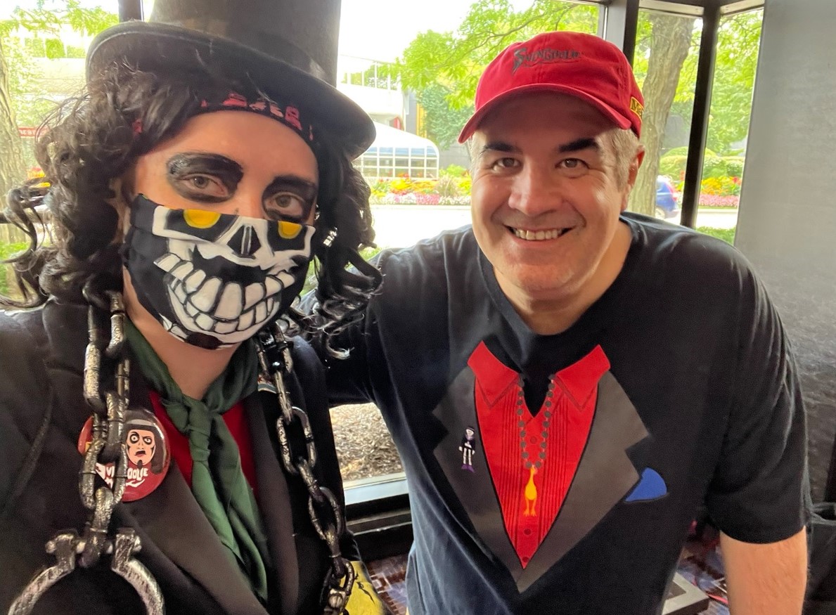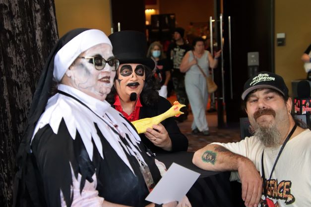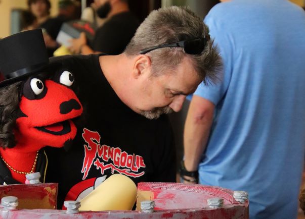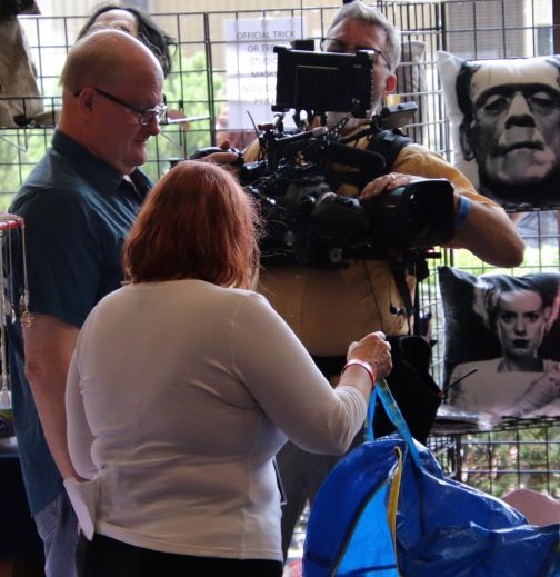 On that Saturday morning at Flashback Weekend, I was enjoying breakfast with my friends when Svengoolie’s producer, Jim Roche, called to say they were en route. This was a whirlwind weekend for the horror host as he’d be appearing at two major Chicago conventions – C2E2 (Chicago Comics & Entertainment Expo) and Flashback Weekend – while filming segments for his October MeTV special – Svengoolie Uncrypted. If you watched it when it first aired back on October 1st (encore presentation this Sunday, October 30th), then you know that Flashback Weekend played a pivotal role during its ongoing skit.
