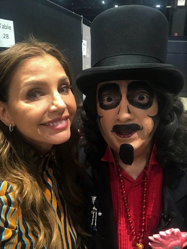 2:25 pm: Jim summons me to meet them at the photo op area. There, I was instructed to escort Svengoolie myself to the signing booth of his friend, actor Michael Rosenbaum. The former Smallville alumnus is also the host of one of my favorite podcasts, Inside of You , so this was a fun errand. While en route, we bumped into Charisma Carpenter who played the iconic “Cordelia Chase” in the “Buffy the Vampire Slayer” series. As mentioned in my previous post, both Svengoolie and I are huge “Buffy” fans so seeing Ms. Carpenter was a true pleasure. Sven introduced himself and asked if they could get a picture, to which she agreed. She then walked over to me, took my cell phone, and snapped a selfie with him. Needless to say, this is one picture on my camera roll I shall never delete!