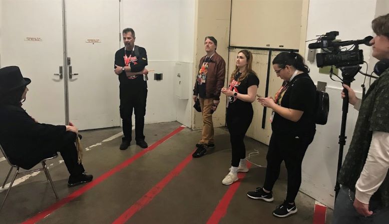 10:40 am: Cameraman, Patrick Payne, and Svengoolie’s Director, Chris Faulkner, immediately set back out to the main floor to gather footage for the show while Producer, Jim Roche, dispatches Associate Producer, Jane Borim, crew member, Brianna, and me over to Artist Alley. Our mission was to locate some of the contributors to the upcoming Frank Miller presents Svengoolie comic. The goal was to see if they were available for a quick interview.