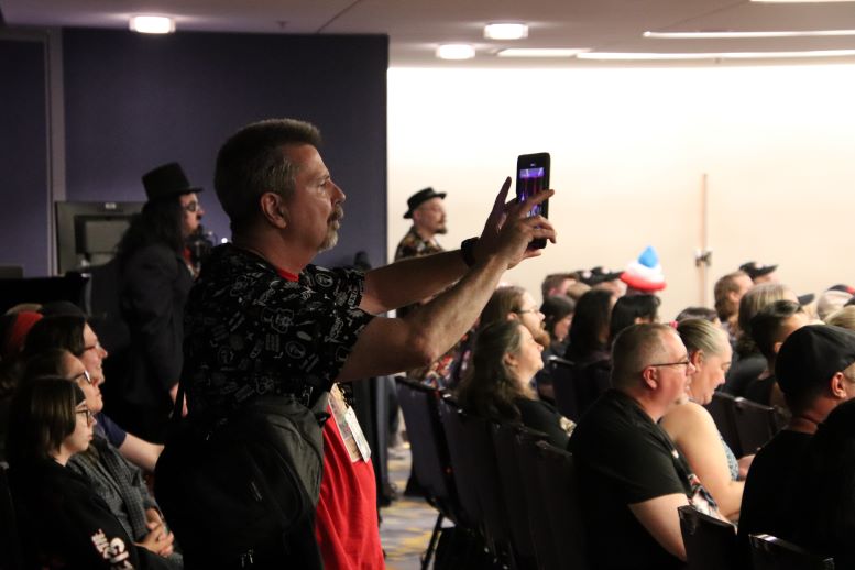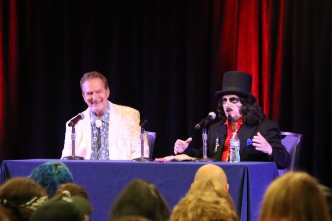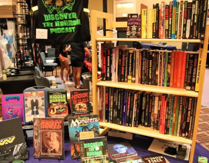 En route to the main ballroom, I was surprised to encounter the great Aaron Christenson. Aaron had honored me several years back when I was invited to contribute to the follow-up to his “Horror 101: the A List of Horror Films and Monster Movies” book with the equally impressive, and Rondo Award-winning, “Hidden Horror: A Celebration of 101 Underrated & Overlooked Fright Flicks.” Recently, Aaron started his own YouTube channel called “HORROR 101 with Dr. AC” featuring spirited discussions on popular and cult horror flicks. Aaron alluded to my joining him sometime in the future which sounded fun, if not intimidating.