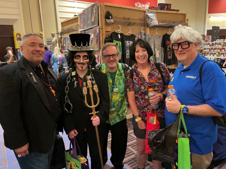 When it was all over, Flashback crew member, and old pal, Don Johnston led me and the Svengoolie crew up to a hotel suite reserved just for them. We all relaxed a bit and discussed the panel. “How did I do?” Svengoolie asked me. “You did great,” I replied, “but you told Joe Bob that Chicago’s first horror host was named Seymor and it was Marvin.” “Oh,” said Sven. “But wasn’t Seymore his middle name?” As I said, nobody is as quick-witted as Svengoolie. I’ve been hanging behind the scenes with him now for over ten years and the only person that can hold their own with him, banter-wise, is Jim Roche.