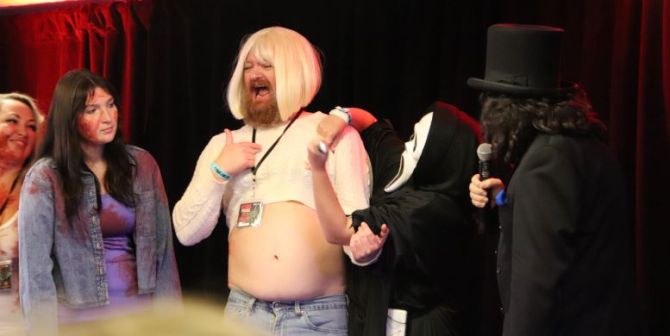One notable group of contestants was from SCREAM (1997). A guy in the group was dressed up like Drew Barrymore’s character with a squib in his fake breast. As soon as they reached center stage “Ghost Face” stabbed him/her releasing the fake blood.