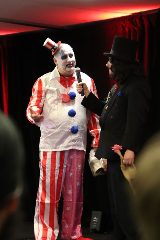 With so many costumes to showcase, it was no wonder that almost all the celebrity guests had packed up for the day. In years past, Svengoolie could leave the contest and just interview one guest after another but this hasn’t happened since 2021. Thankfully, Joe Bob Briggs was still present and Sven was able to stop and say ‘Goodbye.’ I witnessed both legendary hosts invite each other to their shows and express their admiration for one another. Joe Bob also shared some updates on his SHUDDER TV program and, although it’s not my place to say what they were, suffice it to say “The Last Drive-in’s” future looks bright.