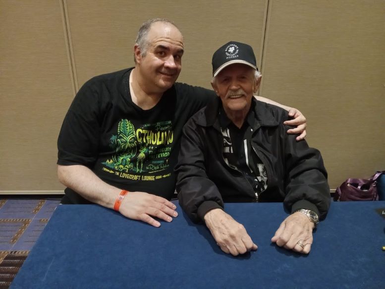 We were surprised to run into Summer; a Flashback Weekend VIP ticket holder who also happens to moderate the panels for Days of the Dead and all their cross-country shows. As Summer explained to us, her allegiance is to horror and she has maintained her own identity outside DOTD. This is proven by her excellent work on the popular podcast, The Dolls of Horror. Summer was accompanied by one of her cohosts, Nina. and we stood near Dick Warlock’s signing booth talking while I kept vigilant for his arrival.