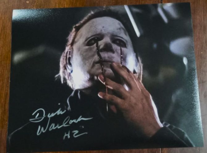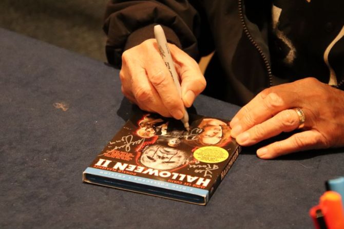 Warlock loved talking to his fans and was happy to share some behind-the-scenes stories of filming Halloween II. He mentioned the scene where Myers attacks Nurse Jill (Tawny Moyer). She fell and hit her head during filming, causing Warlock to drop the mask and take on his other role in the production; Chief Safety Officer. “I was hoping she forgot about that incident but years later I saw her again at a horror convention and it was the first thing she brought up!” he said.