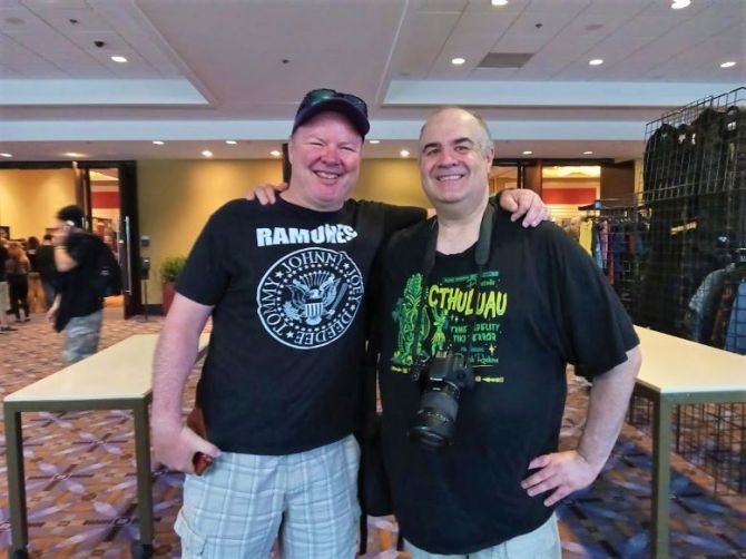 On my way out I bumped into my old pal, Russ Wrangler. Russ and I had done a few out-of-state horror cons together years back and he was a hoot to hang out with; one of the funniest guys I’ve ever met.