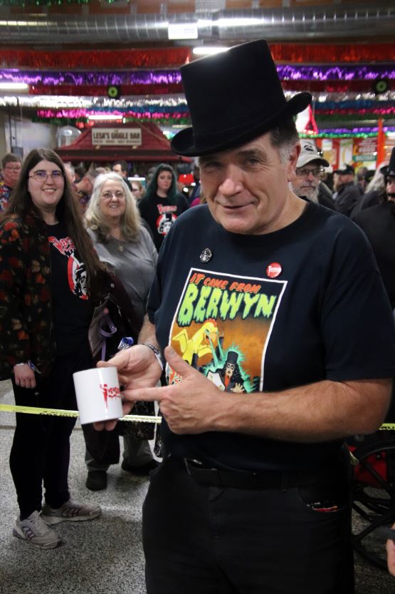 Yes, this has definitely been another stellar year for the Svengoolie merchandise machine, In fact, I was in awe of all the new comic books, t-shirt styles, and Svengoolie action figures that have been released since last year’s Volo appearance. A couple weeks ago, they even released 650 blow-up lawn Svengoolie decorations for about $100 a pop and they ALL sold out within 7 hours! To quote Jim Roche, “Sven’s an overnight sensation, 40+ years in the making!”