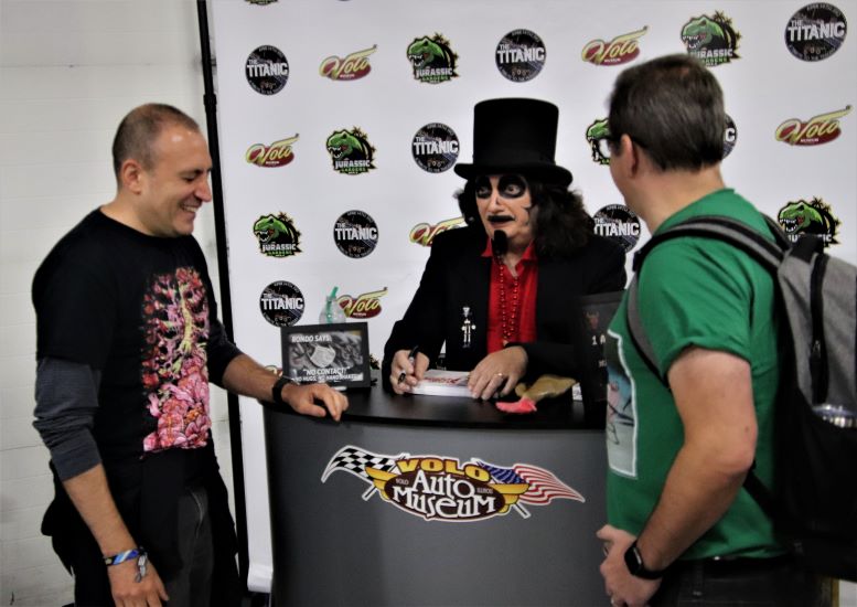 Fans cheered at the sight of Sven as we were escorted to his signing area. Per usual, his line zig-zagged throughout Volo’s main showroom with even more fans lined up outside and waiting their chance to come in. I no sooner set up the merch table before the sales immediately kicked off. My setup was about fifteen feet in front of Svengoolie and right up against the autograph line. This worked out great as it encouraged sales while providing an ideal vantage point for snapping photos – definitely a better angle than the one I had the previous weekend at Nightmare on Chicago Street.