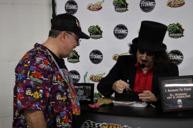 Working between us was a professional photographer who wasn’t afraid to push people out of her way – including Volo employees and me on several occasions. In an effort to accommodate all of Svengoolie’s fans and keep the line moving, Volo doesn’t allow people to take pictures of themselves with Sven using their own cameras like his other appearances but has their own photographer take them all and then post online for free downloads. Although some people weren’t happy about it, everyone agreed it was for the best.