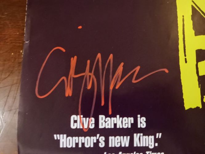 During my wait, Jade and Joe optimized my time by taking my poster to Craig Sheffer and Simon Bamford while I waited for Barker. In addition to my poster, Sheffer also signed by Imprint Blu-ray cover for Fire in the Sky (1993) a film I discussed years ago. I had this cover signed by D.B. Sweeney at a past Days of the Dead and was happy to add Sheffer’s signature to it. I’m crazy about that movie and it’s one I re-watch about every six months or so.