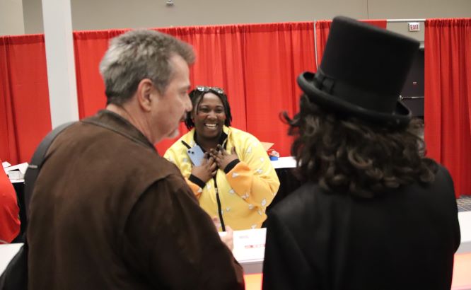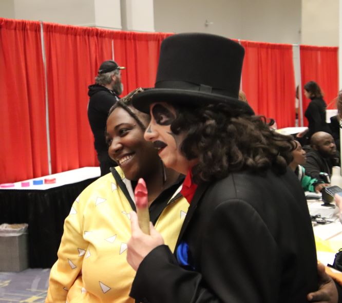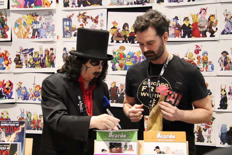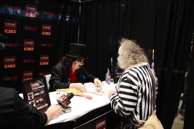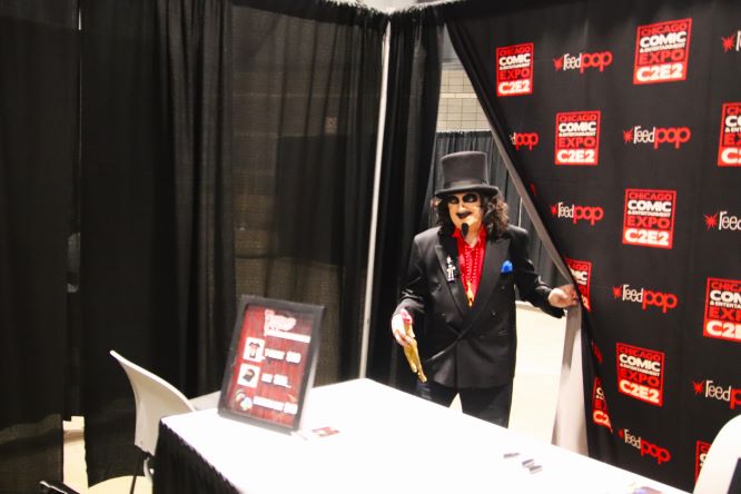 After the signing and completing Svengoolie’s photo op, Jim was eager to get to Artist Alley and film some interviews. Svengoolie, however, wanted to find his dear friend and wrestling legend, Jim Lawler. At the end of the day, Sven’s the boss, so Jim and I set out to locate him. We knew his booth number, but our cell reception was so bad we couldn’t access the convention map. Ultimately, we were unsuccessful even with the assistance of two different C2E2 Crew members. We knew we’d have more time to find him on Saturday, so, unfazed, it was Artist Alley, here we come.