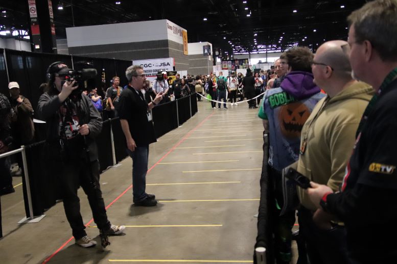 After the signing, we returned to the “FEMA camp” behind the scenes to relax. Sven and his Executive Producer, Jim Roche, discussed the day’s plans while Director Chris Faulkner and cameraman Patrick Payne went on the floor to obtain convention footage for the show.