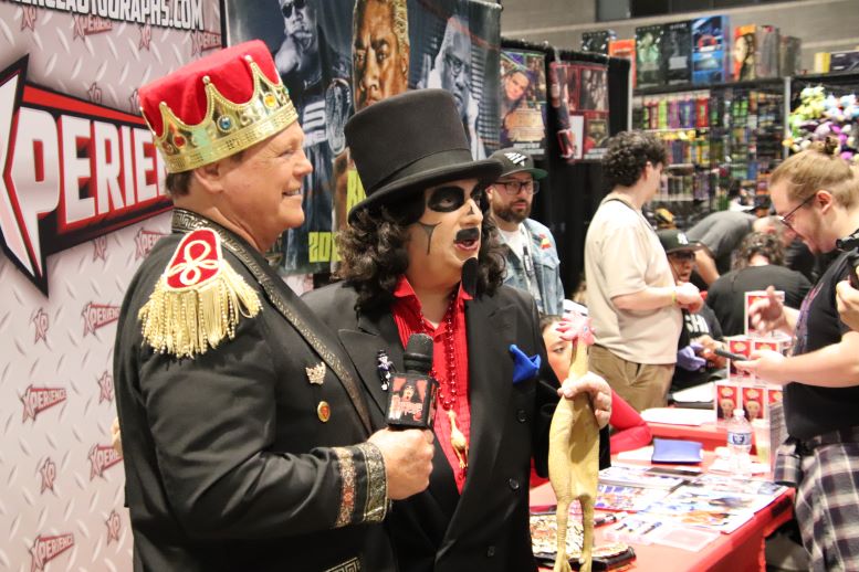 With time to kill, we took we went out onto the main floor in search of wrestling legend Jerry “the King” Lawler. As mentioned in my previous post, we weren’t able to find him on Friday until I randomly stumbled upon his booth after Svengoolie and crew had left. So today I guided everyone to him.