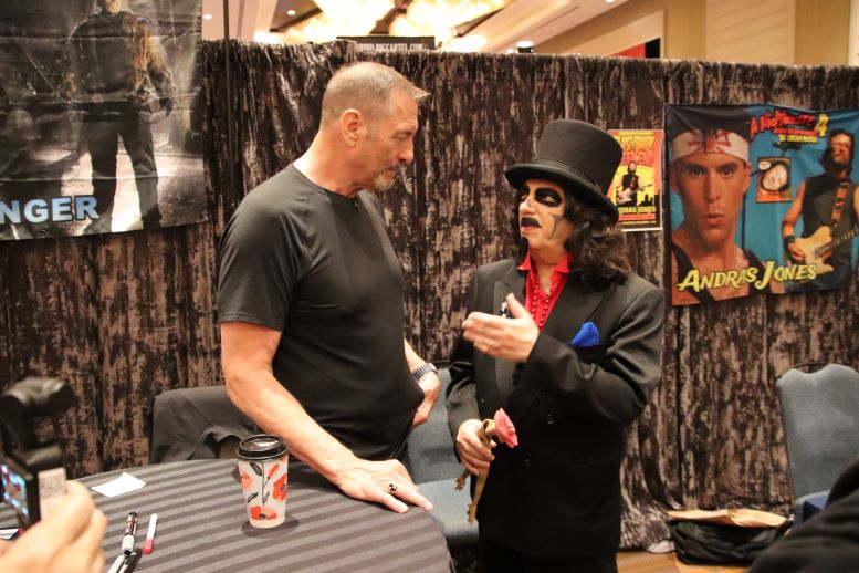 While Sven was interviewing Wyss, Tuesday Knight’s A Nightmare on Elm Street 4 co-star, Andras Jones (“Rick Johnson”) called me over to him. “Hey!” he said. “How come Svengoolie never asks to interview me when I’m here?” I brought it to their attention, so Svengoolie and crew could rectify the situation. I’ll be honest, the last time I saw any Nightmare on Elm Street movies after Part 3 was when I saw them in theaters back in my teens/early ’20s. I’m definitely going to have to revisit these films during my 2025 October horror movie marathon. It appears that Jones is more a musician than actor these days as he was selling vinyl at his table and no doubt could benefit from some national TV exposure.