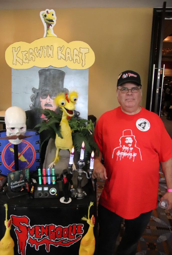 Another familiar face was Warner Todd Huston who wore a custom Son of Svengoolie shirt while pulling a wheeled tribute to the man (now simply Svengoolie) himself. I’d seen his “Kerwyn Kart” last year, but he’s made a few adjustments since.