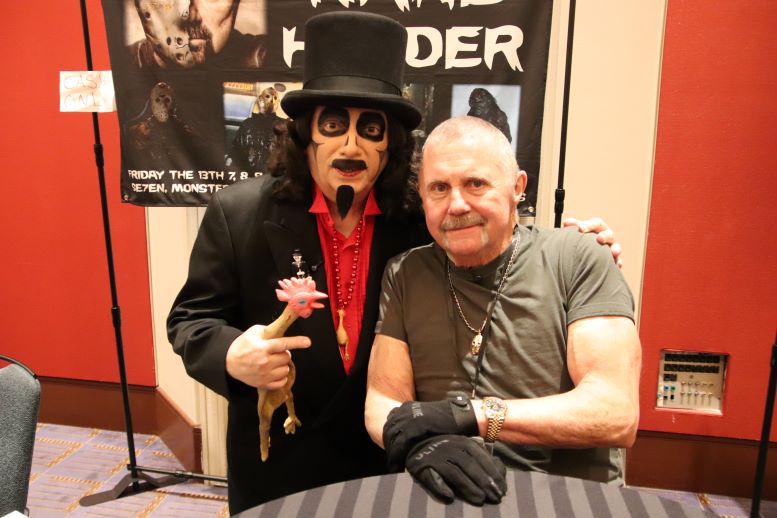 I continued playing Silver Surfer to Sven’s Galactus; preparing the Flashback Weekend guests for his arrival (yes, I recently saw The Fantastic Four). And next on the list was one of the Friday the 13ths most renowned “Jasons,” Kane Hodder. Hodder has been interviewed by Svengoolie before and the two had an excellent rapport. Their chemistry continued to shine in this one.