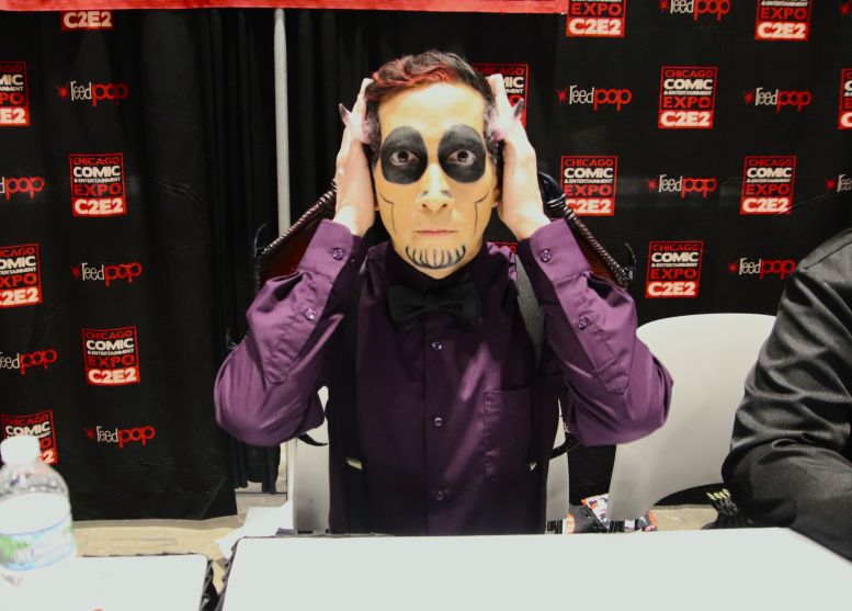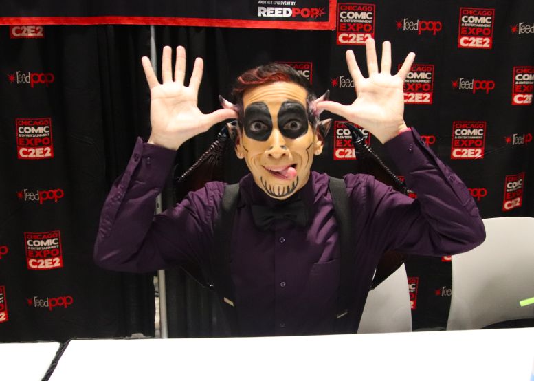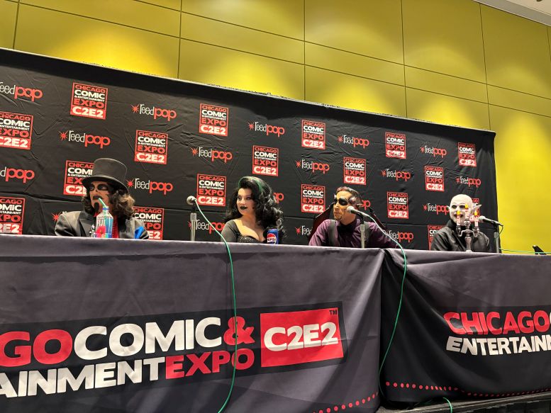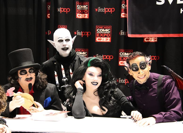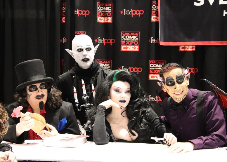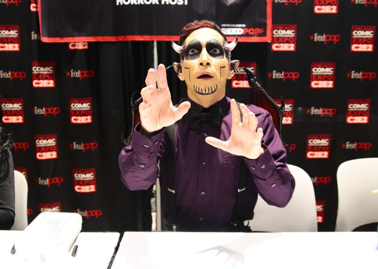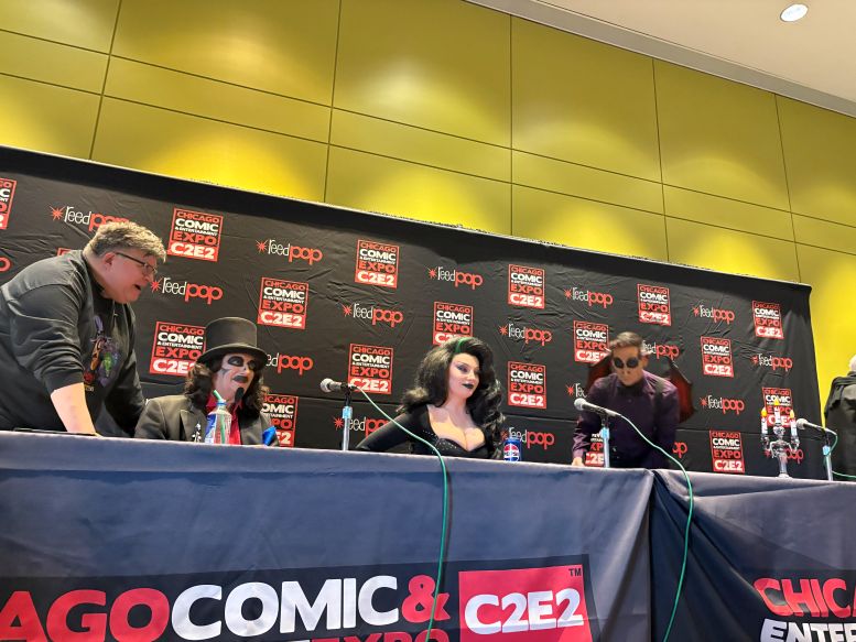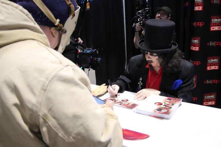 I met back up with the crew in the Green Room and was having a nice chat with the sound specialist, Martin Stebbing (he worked in the music industry back in his native UK, and we discussed our mutual admiration for David Bowie) when actor Martin Sheen walked in. Looking at the cast members, he approached us and, sounding every bit like his famous character President Jed Bartlett from The West Wing, asked, “What is this, some kind of horror show?” We all laughed and, after explaining who we were, shook his hand. I told him he was my favorite President and, as a huge fan of that TV series, this was one of the highlights of C2E2 for me. It was also hilarious watching him have a conversation with Nostalgiaferatoo in full makeup while he told Mr. Sheen his alter ego, Bill Leff, had acted with his son, Charlie Sheen, in Major League (1989) and Major League II (1994). I should note that Svengoolie and Jim Roche were unfortunately absent from this experience.