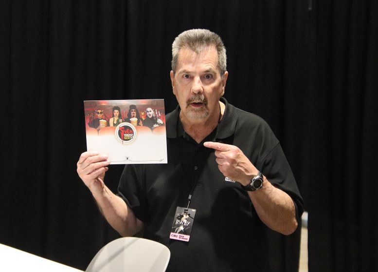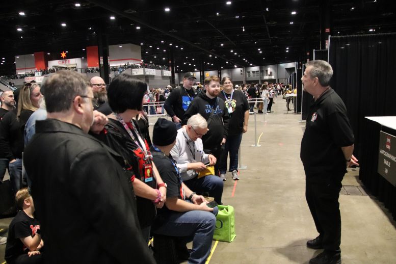 As is tradition, executive producer Jim Roche hyped up the crowd. Unlike Friday’s Svengoolie signings, Saturday’s with the Squad had stricter stipulations. Autographs were still free, but they would only sign a promo card (the same used at the San Diego Comic Con last year) and no personal items. The only exception to this rule would be at the second signing (scheduled for 5 pm), where they’d also autograph anyone’s group Photo Op pictures taken between sessions.