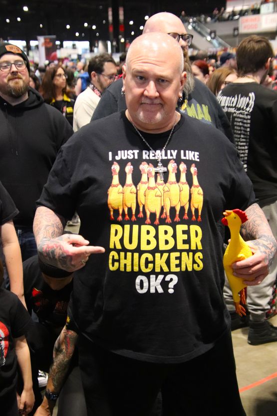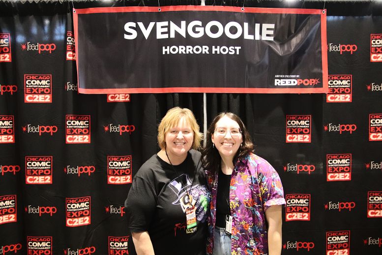 At one point, I saw two people wearing Svengoolie shirts and thought it would make a fun shot for this blog. I didn’t realize until later that it was MeTV social media specialist Briana Janczy and her mom, Margie. When it comes to not wearing my glasses out in public, I’m a regular Jan Brady (yet another nod to Gen X pop culture).