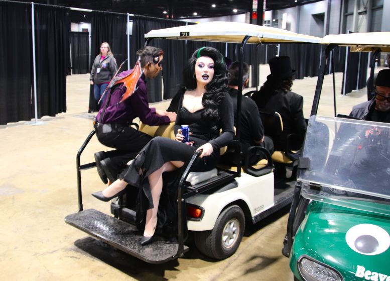 A golf cart whisked the cast members off to their panel while the rest of us hoofed it.