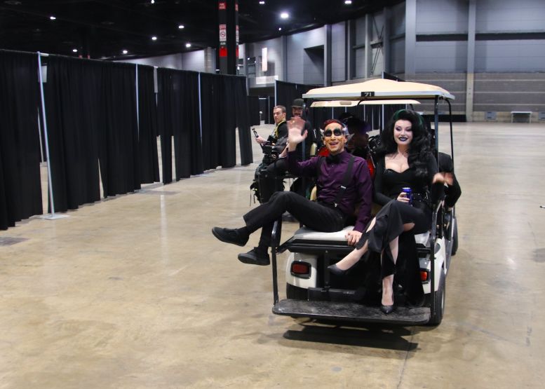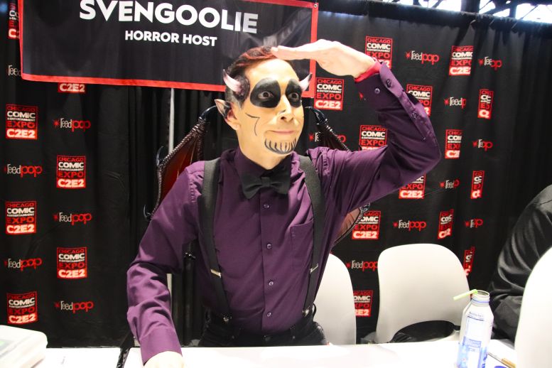 About halfway through, I decided I’d had enough following fans down the entire cast’s line and just stayed with Svengoolie. This was for two reasons: first, I was tired of dodging fans and crew members; second, I could help keep the line moving. When he gets tired, Svengoolie can be kind of cranky when the line stalls, and at this juncture, he and I were on the same page. By the time it was over, I felt like I’d run a marathon.