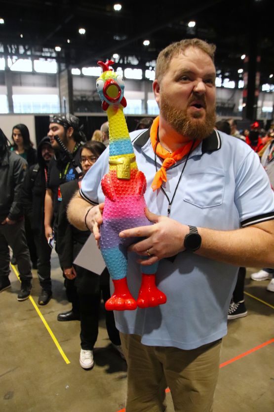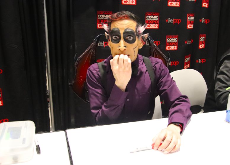 One nice nod to a past C2E2 came about when a group of cosplayers dressed as Batman villains came to see Sven. Back in C2E2 2018, I photographed them being interviewed with Sven and later took a group shot. They asked if they could re-live the experience. They also wanted to start a new tradition by getting a shot with Gwengoolie.