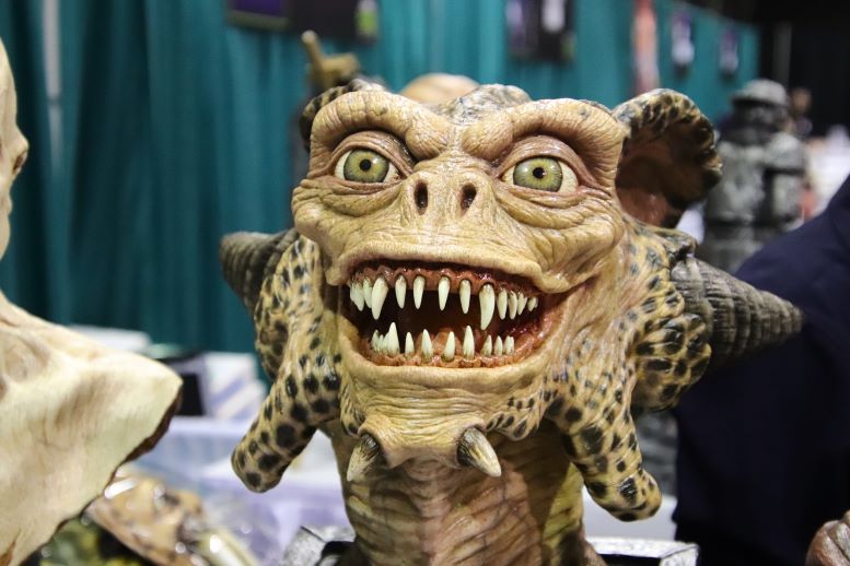 Having finished up with his interviews, Svengoolie and crew headed just outside Flashback Weekend‘s main hall to his designated signing spot. It was finally time to greet his patient fans and, considering how long many of them had been standing out there, not a moment too soon. There were three lines (one for Flashback VIP badge carriers) and, despite some initial confusion, went smoothly overall. As with C2E2 a few months back, my job was to take photos of Sven with his fans; using their own cameras. Producer, Jim Roche, fired up the crowd while dispensing some of the ground rules for meeting MeTV’s Saturday night sensation.